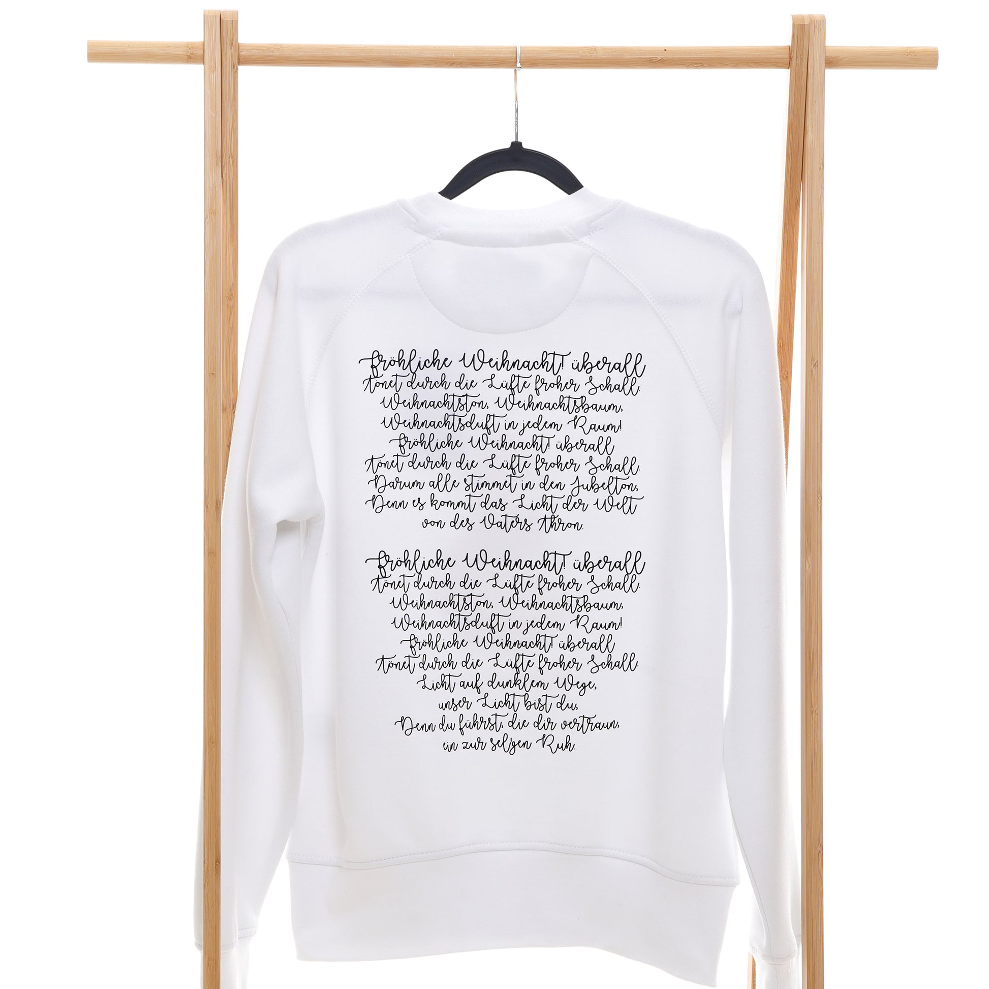 Und als besonderes Highlight: der Rückenprint mit 'Fröhliche Weihnachten überall!' sorgt für festliche Vibes, wohin du auch gehst.